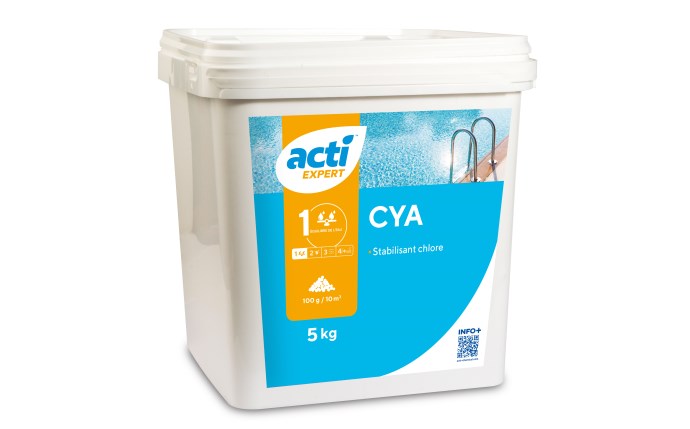 Le stabilisant CYA s’utilise avec du chlore non stabilisé.